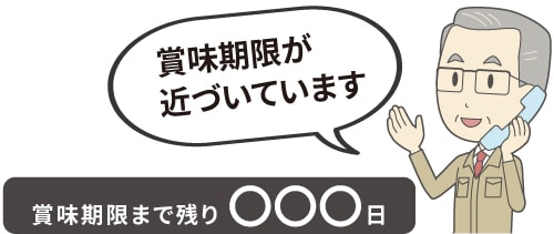 備蓄食の廃棄に繋がる大きな要因の一つが、食品の期限管理です。 私たちは「期限管理サポート」により備蓄品の賞味期限を管理し、期限の1年以上前に更新時期をお知らせしています。 気づいたときには「期限切れ」で「廃棄」につながる事態を防ぎ、計画的な更新を可能にします。