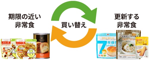 防災備蓄の中でも非常食は、導入後も継続的な更新が必要です。「買い替えサポート」は期限前の非常食の更新負担を一部サポートします。