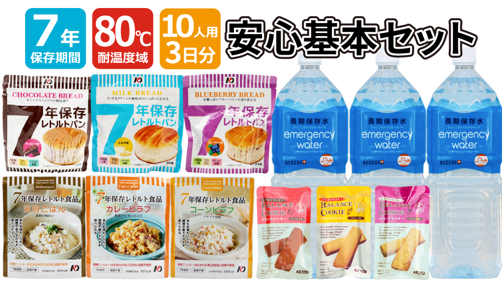 【80℃対応7年保存】安心基本セット 9食3日分・10人用